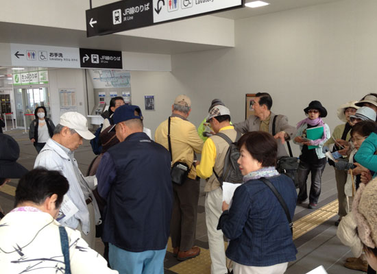 西条駅でこちらに皆さん集まって下さい 坂本さんにはお世話様になりました |